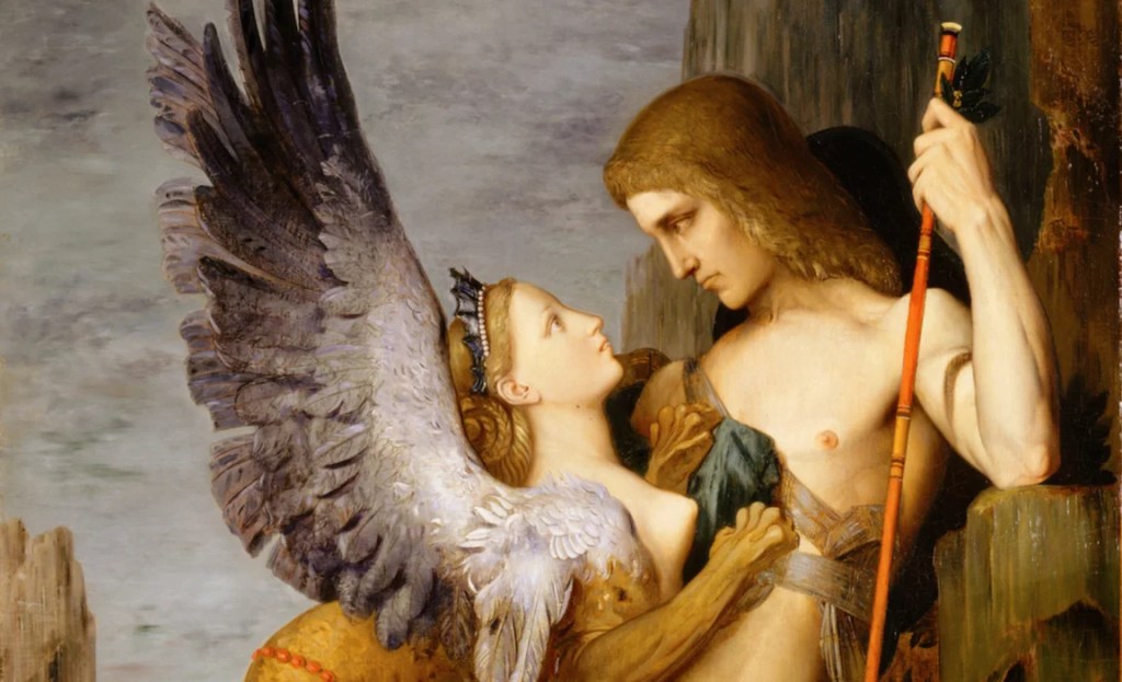 Ma chi è Edipo? E’ figlio dei sovrani di Tebe, Laio e Giocasta, i quali decidono di recarsi all’oracolo di Delfi per conoscere le sorti del neonato. In quella occasione, l’oracolo pronuncia una terribile profezia: Edipo in futuro avrebbe ucciso il padre, sposato la madre e avrebbe causato la rovina di tutta la città. Ai genitori di Edipo resta una sola soluzione: uccidere il figlio. L’assassinio viene affidato a terze persone ma non avviene. Edipo, all’insaputa dei suoi genitori, viene assegnato alle cure di un pastore. Dopo una serie di peripezie che lo portano a entrar a far parte della corte di Corinto, Edipo, senza saperlo, realizza il suo destino: si reca presso l’oracolo di di Delfi, ascolta la profezia che lo riguarda, per salvare coloro che pensava fossero i suoi genitori evita di tornare a Corinto e si dirige verso Tebe, dove a sua insaputa uccide il padre e sposa la madre. Quest’ultima, scoperta l’evoluzione degli eventi e posta di fronte alle indagini di Edipo, decide di suicidarsi.