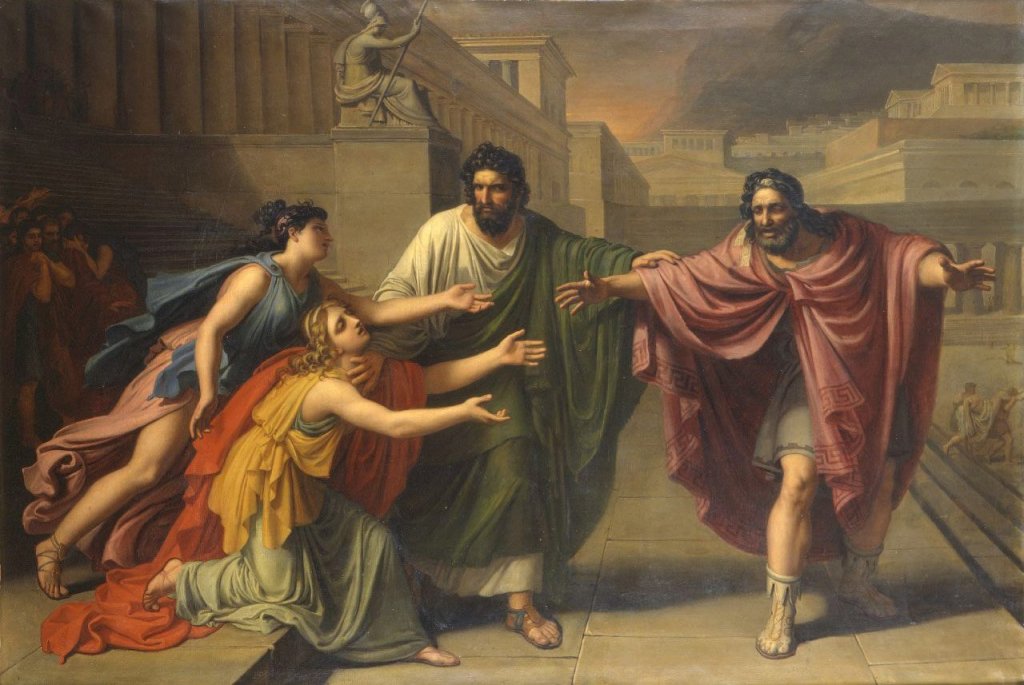 Così, oggi, devi avere il coraggio di ammettere tutte le tue colpe, Edipo. Con quale codardia ti sei accecato! Forse la vergogna era troppa anche per te, evidentemente. Non sei giustificato dalla tua condizione fisica né tantomeno dal fato. Ti sei mostrato per ciò che sei: un ignavo. Oltre ad aver causato l’ira degli dei e quindi migliaia di morti in città, oltre ad aver ucciso tuo padre, sei stato la rovina di una sacra donna, che ti ha tenuto in grembo per nove mesi, con cui ti sei sposato, con cui hai messo al mondo creature. Non solo Era, dea del matrimonio e della famiglia, è turbata da questa serie di eventi: nessun sacerdote è in grado di calmare il caos che hai creato. L’unica soluzione è che tu ammetta i tuoi mostruosi peccati, anche quelli commessi senza volere, e che tu lasci questo mondo e quella terra senza re.